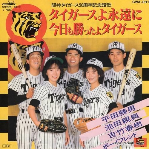 2曲入、B面:今日も勝ったよタイガース、平田勝男、池田親興、吉竹春樹、ボーイフレンド、阪神タイガース50周年記念讃歌 サンプル盤、白ラベル