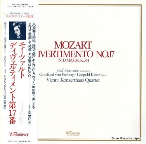 ウィーン・コンツェルトハウス四重奏団 モーツァルト:ディヴェルティメント第17番 VIC-5372のレコード買取をしております!