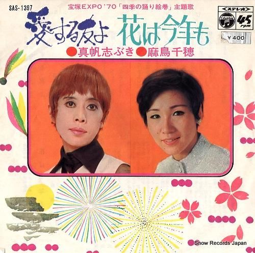 2曲入、価格改定ステッカー付(¥400円)、B面:花は今年も(麻鳥千穂)、タカラヅカexpo'70「四季の踊り絵巻」主題歌