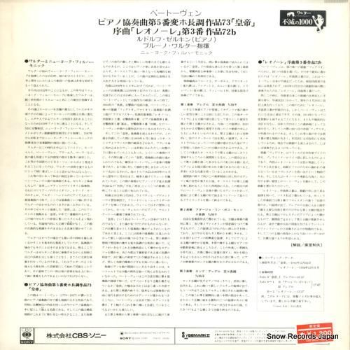 コメントカンパニーインサート付、価格改定ステッカー付(¥1200円)、ルドルフ・ゼルキン、ニューヨーク・フィルハーモニック、序曲「レオノーレ」第3番、ワルター不滅の1000、ジャケにシミ、盤面に傷