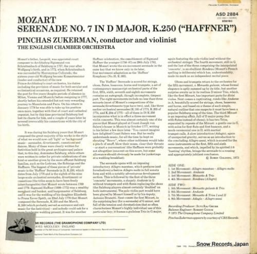 ピンカス・ズーカーマン - mozart; the "haffner" serenade - ASD2884