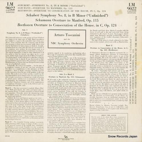 アルトゥーロ・トスカニーニ schubert; unfinished symphony LM9022LM9022