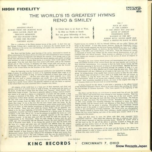 ドン・レノ&レッド・スマイリー the world's 15 greatest hymns KING853KING853