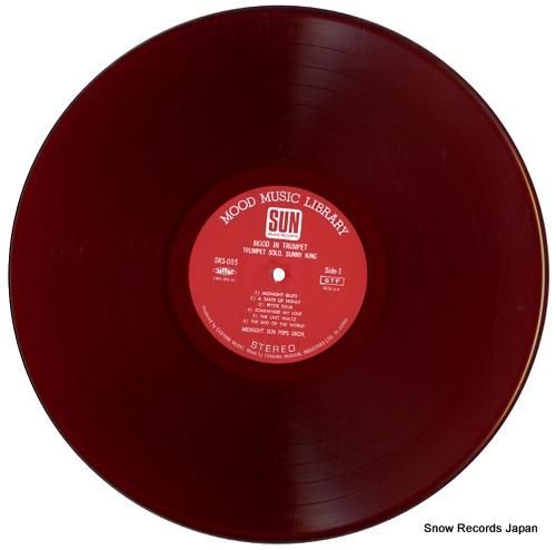 gatefold sleeve, red wax vinyl, sunny king, mood music library no.12, wear on cover, corner damage on cover, disc has scratches