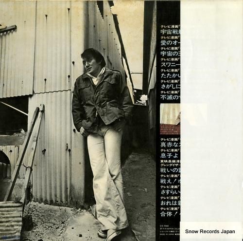 コメント帯付、歌詞カード付、14曲入、宇宙戦艦ヤマト、グレンダイザー、ゲッターロボ、レーベルに再生痕(ヒゲ)有、ポスター欠け、ジャケ四辺に目立つ印刷の剥がれ、ジャケにシミ、ジャケにコーナーダメージ(角落ち等)、盤面に傷