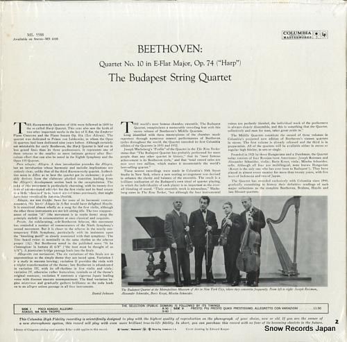 ブダペスト弦楽四重奏団 - beethoven; quartet no.10 "harp" - ML5588