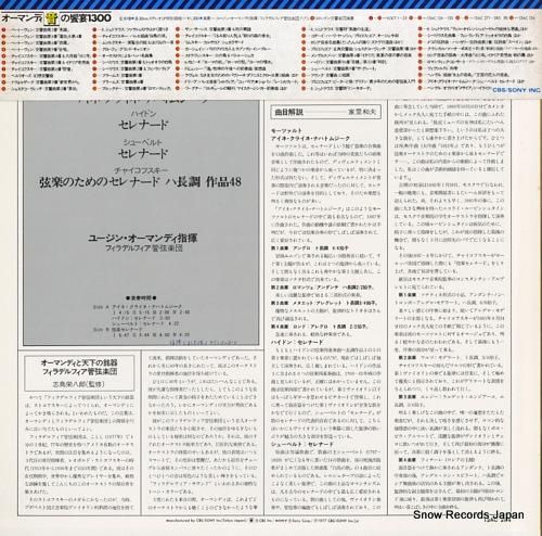 コメント帯付、オーマンディ音の饗宴1300、ハイドン/シューベルト:セレナード、チャイコフスキー:弦楽セレナード、フィラデルフィア管弦楽団、帯にシミ有り、ジャケにシミ、盤面に傷