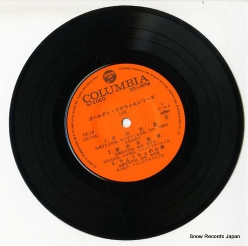 コメントピクチャー・スリーブ付、インサート付、歌詞ブックレット付、14ゴールデン・コロちゃん、夢のお馬車、見開きジャケ、ジャケ四辺に目立つ印刷の剥がれ、ジャケにコーナーダメージ(角落ち等)、盤面にノイズを伴う傷