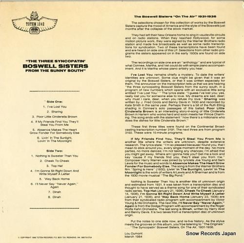 ボスウェル・シスターズ the three syncopatin' boswell sisters from the sunny south TOTEM1042TOTEM1042