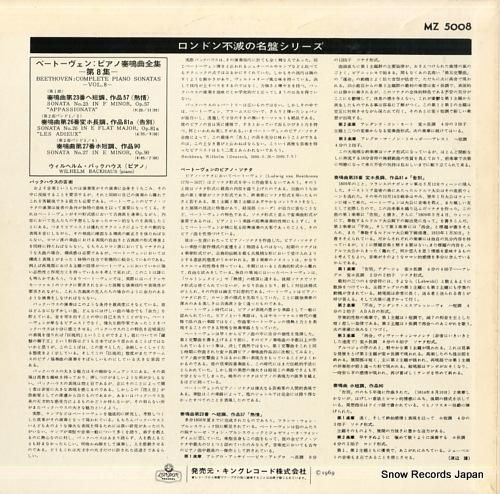 ウィルヘルム・バックハウス - ベートーヴェン:ピアノ奏鳴曲全集第8集 - MZ5008