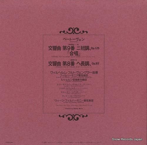 コメント帯付、インサート付、ベートーヴェン:交響曲第8番ヘ長調/交響曲第9番「合唱」、フィルハーモニア管弦楽団, ウィーン・フィルハーモニー管弦楽団, ルツェルン音楽祭合唱団、エリザベート・シュヴァルツコップ、帯に裂け有り、インサートにシミ有り、見開きジャケ、ジャケにシミ、盤面に傷