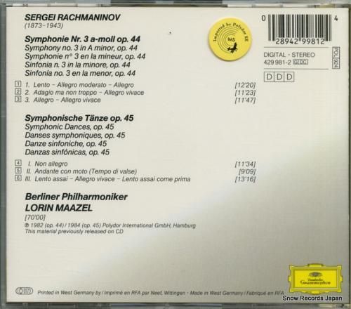 ロリン・マゼール rachmaninov; symphonie no.3 429981-2429981-2028942998124