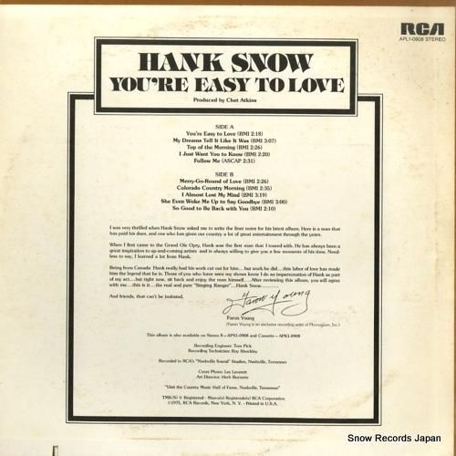 ハンク・スノウ you're easy to love APL1-0908APL1-0908