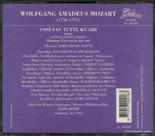 CD: カール・ベーム - mozart; cosi fan tutte - GL100.503