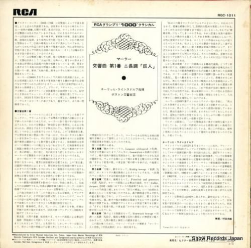 エーリッヒ・ラインスドルフ - マーラー:交響曲第1番ニ長調「巨人」 - RGC-1011