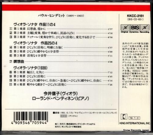 今井信子/ローランド・ペンティネン ヒンデミット:ヴィオラ・ソナタ作品11の4 BIS-CD-651 / KKCC-2151BIS-CD-651 / KKCC-21514909346705944 / 7318590006511