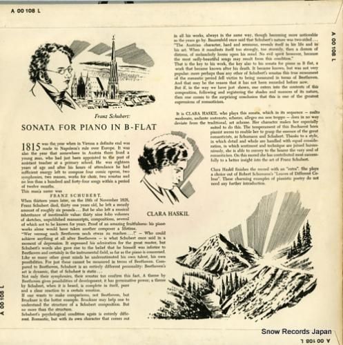 クララ・ハスキル schubert; sonata for piano A00108L