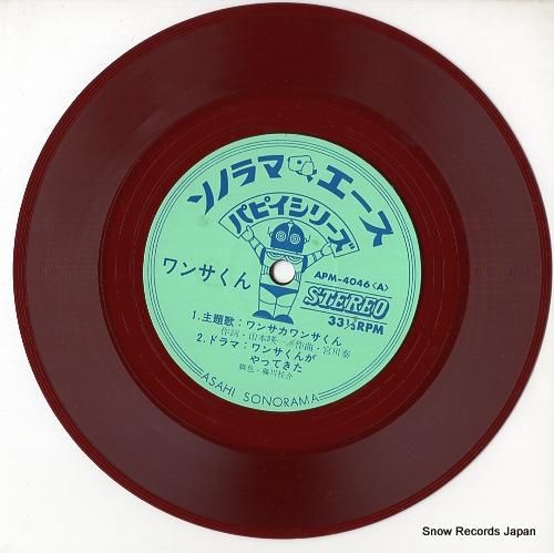 コメントピクチャー・スリーブ付、ブックレット付、朝日ソノラマ、ソノラマエース・パピイシリーズ、ワンサくん、ドラマ:ワンサくんがやってきた、ピンコラ音頭、見開きジャケ、ソノシート、ジャケにコーナーダメージ(角落ち等)、レーベル面にシミ、盤面に傷
