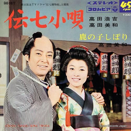 コメントピクチャー・スリーブ付、カンパニー・スリーブ付、2曲入、B面:鹿の子しぼり(高田美和)、TVドラマ「伝七捕物帖」主題歌、ジャケにシミ、盤面にノイズを伴う傷