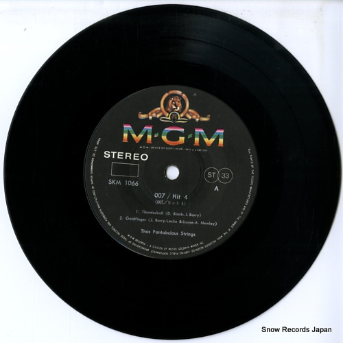 4trk, flipback sleeve, original price=450yen, a1.thunderball a2.goldfinger b1.from russia with love b2.james bond theme, thos fantabulous stringsdanny davis, writing on back cover, ringwear on cover, stains on cover, disc has scratches with noise