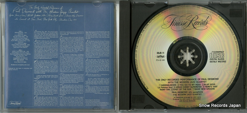 CD: ポール・デスモンド/MJQ - the only recorded performance - 38JD-11