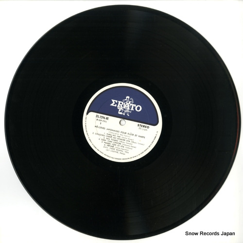 コメント帯付、2帯付、補充票付、フルートとハープによる日本旋律集、春の海、赤とんぼ、花、さくらさくら、チリパチノイズ有り、見開きジャケ、ジャケ四辺に目立つ印刷の剥がれ、ジャケにコーナーダメージ(角落ち等)、盤面にノイズを伴う傷
