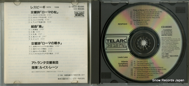 ルイ・レーン respighi; pines of rome CD-80085CD-80085