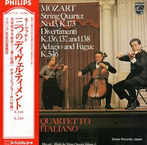 イタリア弦楽四重奏団 モーツァルト:三つのディヴェルティメントk.136〜138 X-7516