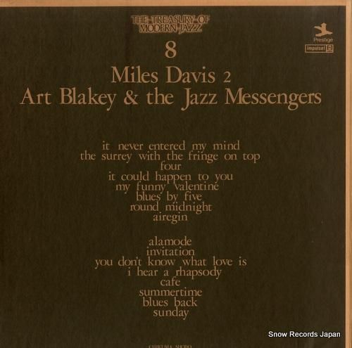 筑摩書房発行「モダン・ジャズ」全13巻中の第8巻、マイルス・デイヴィス、アート・ブレイキーとジャズ・メッセンジャーズを収録、レコード原盤:PRESTIGE/ABC IMPULSE!、レコード製作:東芝EMI、編集:野口久光、油井正一